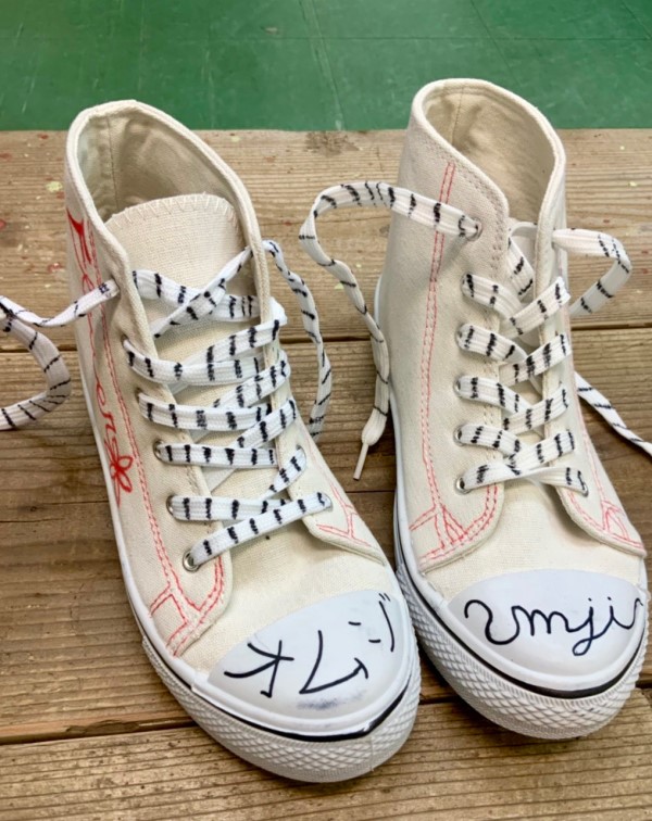 メンバーが自ら書いたシューズです。メンバーの一人一人の個性が表現されていると思います。